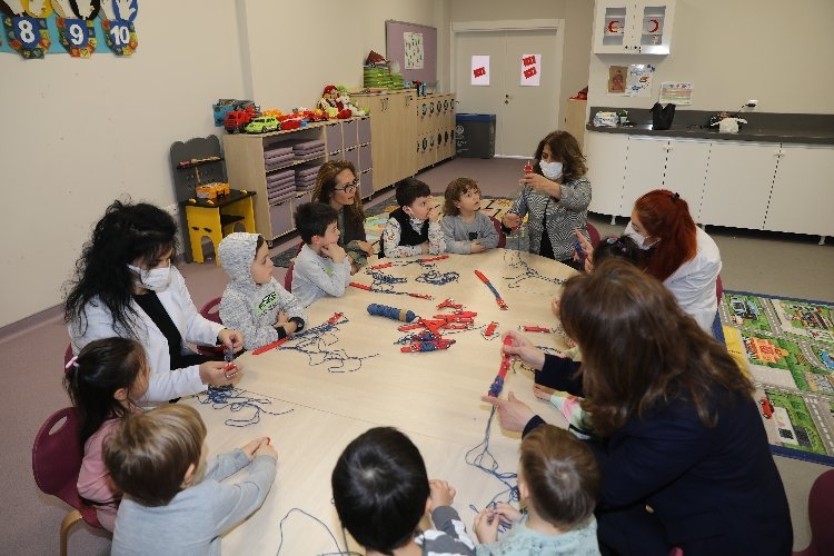 BURSA (İGFA Mudanya'da sokak hayvanlarına karşı çocuklarda koruma bilinci oluşturmak amacıyla yerel belediye bünyesindeki Veterinerlik Hizmetleri Birimi ve Zübeyde Ana Çocuk Akademisi işbirliğiyle hazırlanan atölyede minik öğrenciler can dostları için makrome ipinden tasmalar tasarladı.